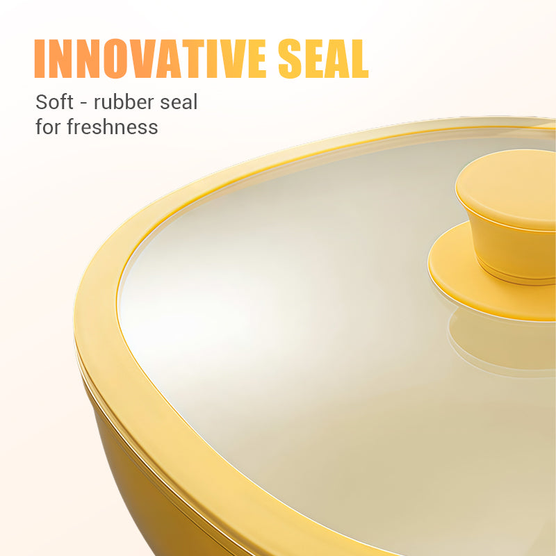 Przezroczysta pokrywa patelni smażącej ma wokół krawędzi uszczelkę z silikonu żywnościowego! Ściśle przylega do brzegu patelni, tworząc mikrośrodowisko wysokiego ciśnienia – przyspiesza mięknięcie składników i zamyka świeżość, podnosząc smak dania. Oferuje wspaniałe doświadczenie z gotowania, nawet dla trudnych do przygotowania dań!
