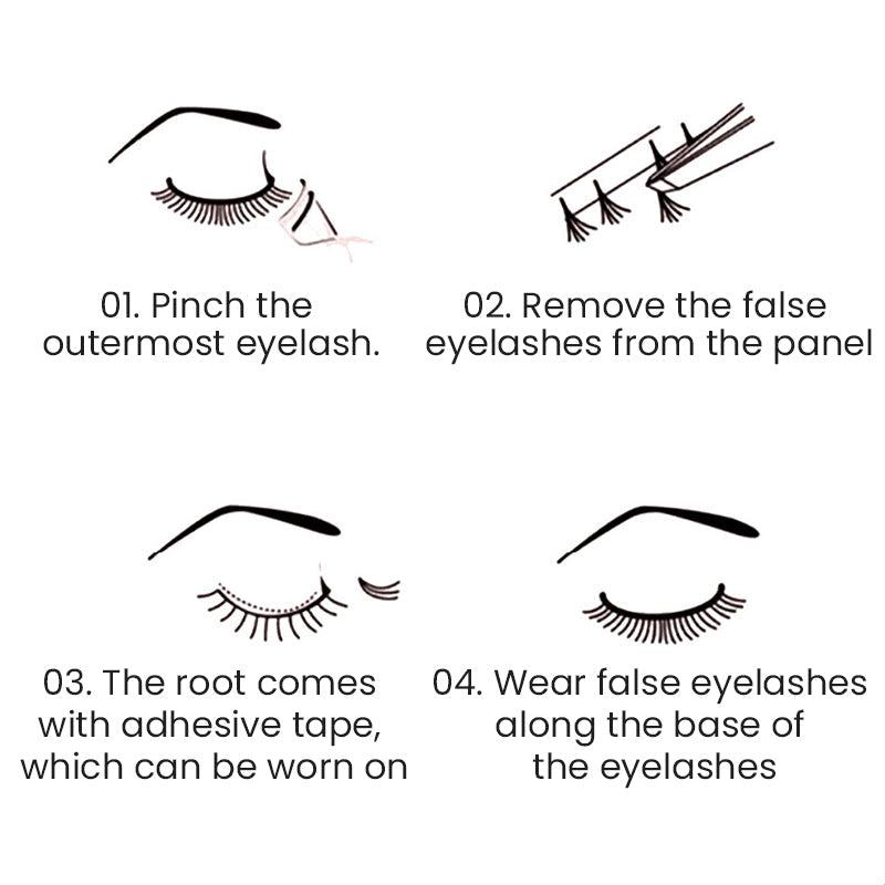 Zestaw 36 sztuk samoprzylepnych rzęs w formie kępek bez kleju