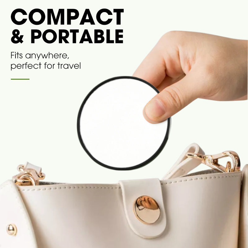 PRZENOŚNA KONSTRUKCJA: Dzięki średnicy zaledwie 9 cm i wadze 40 g lusterko z łatwością zmieści się w torbie, szufladzie lub zestawie podróżnym. Zabierz je ze sobą wszędzie, aby zadbać o swój wygląd w podróży bez utraty wydajności.