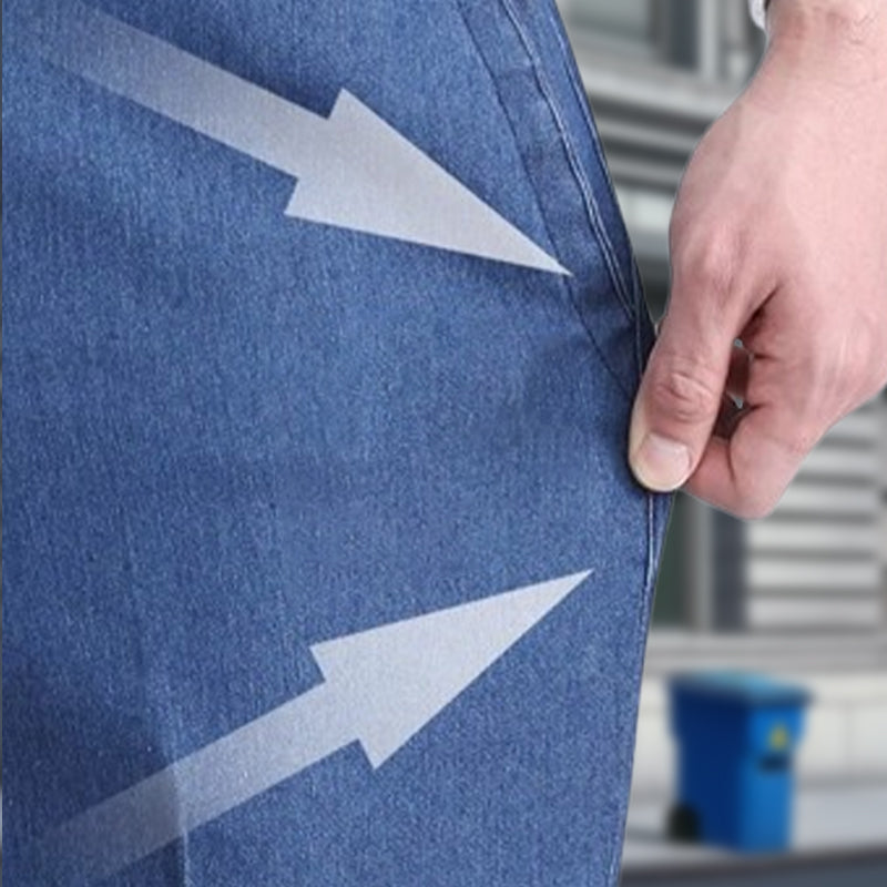 4-WAY STRETCH DENIM DLA PEŁNEJ SWOBODY – Wykonany z najwyższej jakości mieszanki bawełny, która porusza się wraz z ciałem, oferując nieograniczoną mobilność podczas pracy, jazdy samochodem lub relaksu. Wytrzymała technologia stretchu zachowuje swój kształt po każdym praniu, zapobiegając zwijaniu się w kolanach.