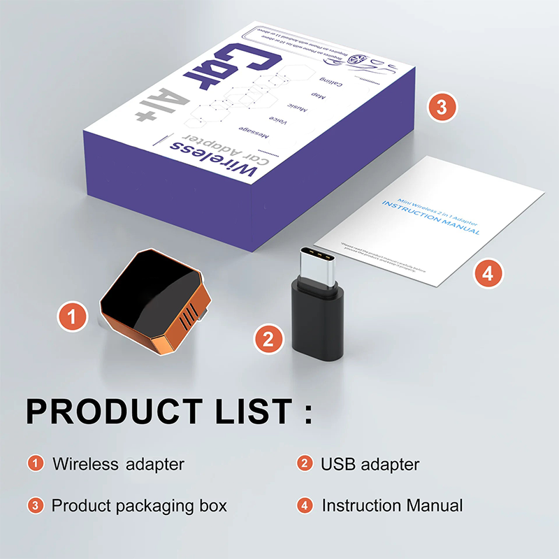 • 1 × Inteligentny adapter bezprzewodowy do systemów CarPlay i Android Auto (Kompatybilny z Polską!)