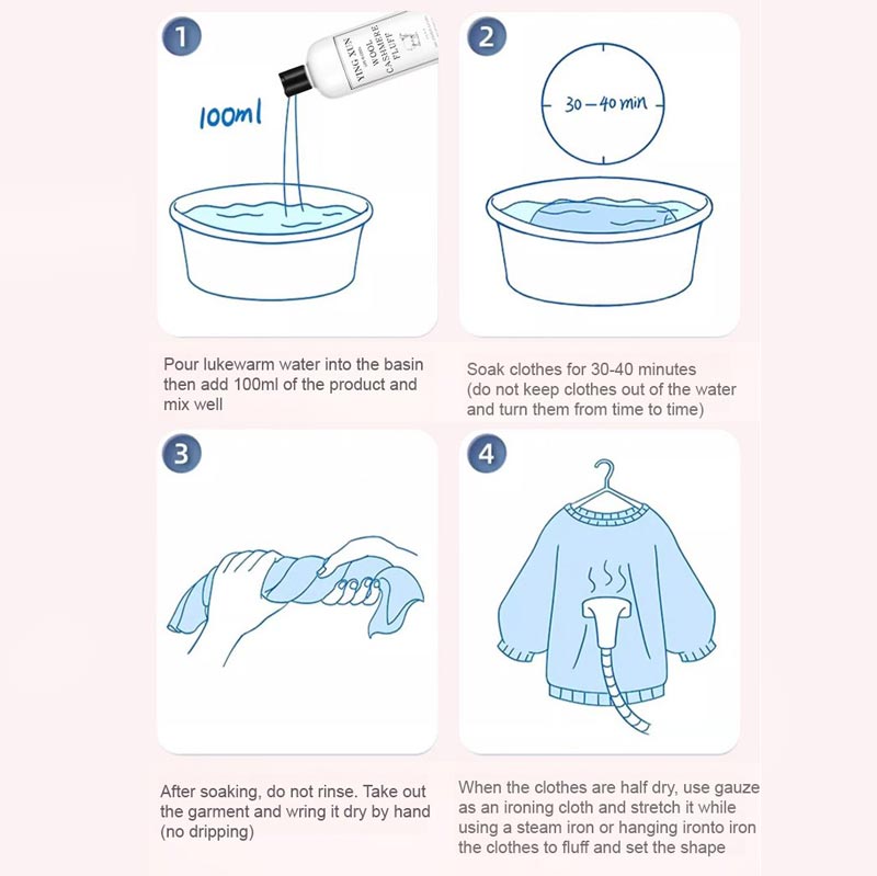 Ten środek skutecznie rozluźnia i rozciąga włókna skurczonych swetrów z wełny, pozwalając Ci odzyskać oryginalny rozmiar i dopasowanie swoich ubrań. Nie musisz już martwić się, że nieprawidłowe pranie zniszczyło Twój ulubiony strój – ten odtwarzacz naprawia szkody!